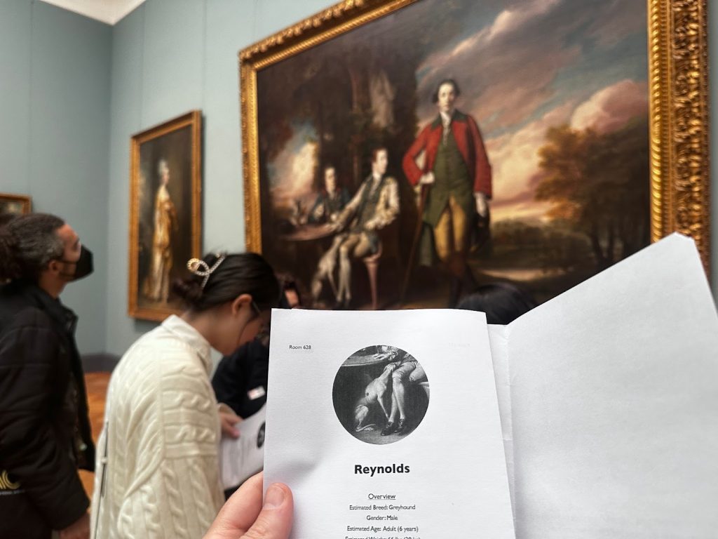 Rachel Jung A Huh (she/her) created a zine that explored the fictional world of a dog shelter, The Canvas Shelter, where the audience could understand a dog’s reason for being placed for adoption and the busy lives of the people in the European Painting Wing. This tour captured the imagination of everyone involved, as all MFA first-year candidates on this tour had their own pups they had to leave behind.